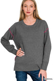 Round Neck Contrast Trim Sweater TOTAL BODY LENGTH: 25.5", CHEST: 41.5" approx. - MEASURED FROM SMALL Fabric Contents 100% POLY