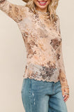 Floral Semi Sheer Top With Frilled Merrow Hem CONTENT + CARE - 92% POLY 8%SPANDEX True to size fit hand Wash or wash on gentle