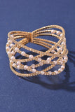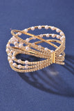 Gold Rhinestone Pearl Memory Wire Bracelet