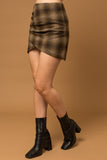 Brown Wrap Plaid Mini Skirt