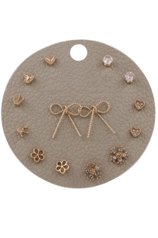 Metal Assorted Heart Bow Tie Post Earrings 46181-E-C 7 Pairs Post back