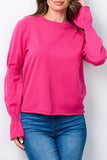 Solid Long Smocked Sleeve Round Neck Blouse Top * 30% Viscose 27% Poly 25% Acrylic. * Hand Wash. Model is wearing size S Length: 22" Bust: 34" Waist: 18".