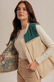 Color Block Corduroy Fisherman Vest deep side packets Additional chest pocket with zipper detail True to size fit Perfect for layering COLOR BLOCK CORDUROY FISHERMAN VEST -97% POLY 3% SPANDEX
