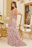 Preview only. Available for in-store purchase Adorned with sparkling embellishments on the fitted bodice. The sleeveless, deep V-neckline features a sheer inset and thin straps, adding a touch of allure to the design. The back boasts a low open style with a lace-up closure, ensuring a snug and comfortable fit. Fabric Contents 100% Poly