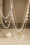 Triple Layer Pearl And Chain Link Necklace Stunning pearl and chain link multi-layered necklace with a shiny pendant *Metal/Pearl *Nickel/Lead Compliant *APPROX.L 16" +17" + 20" Ext 3" 0.65oz *Imported